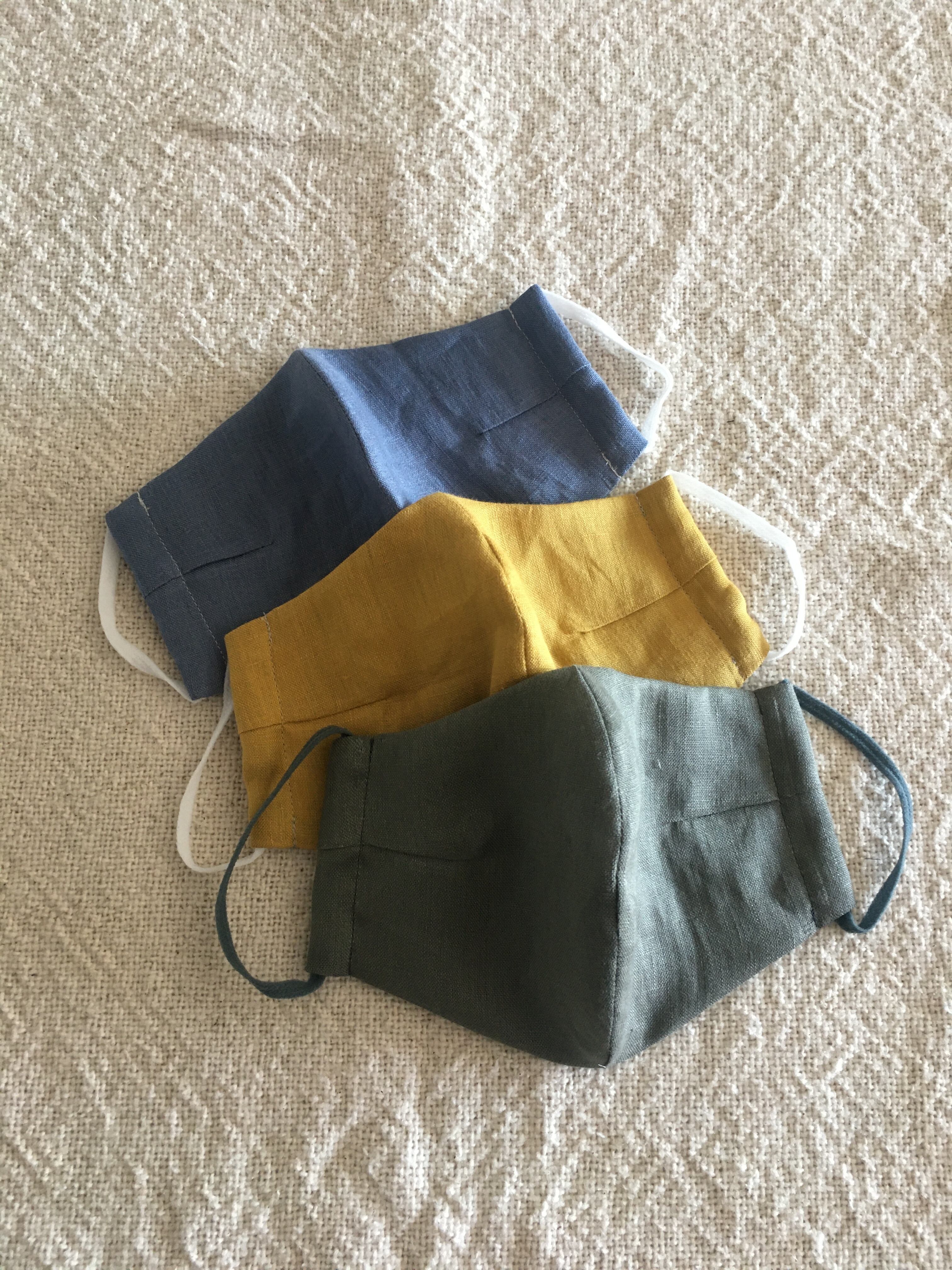 【立体マスク】リネン×ダブルガーゼ ライトブルー