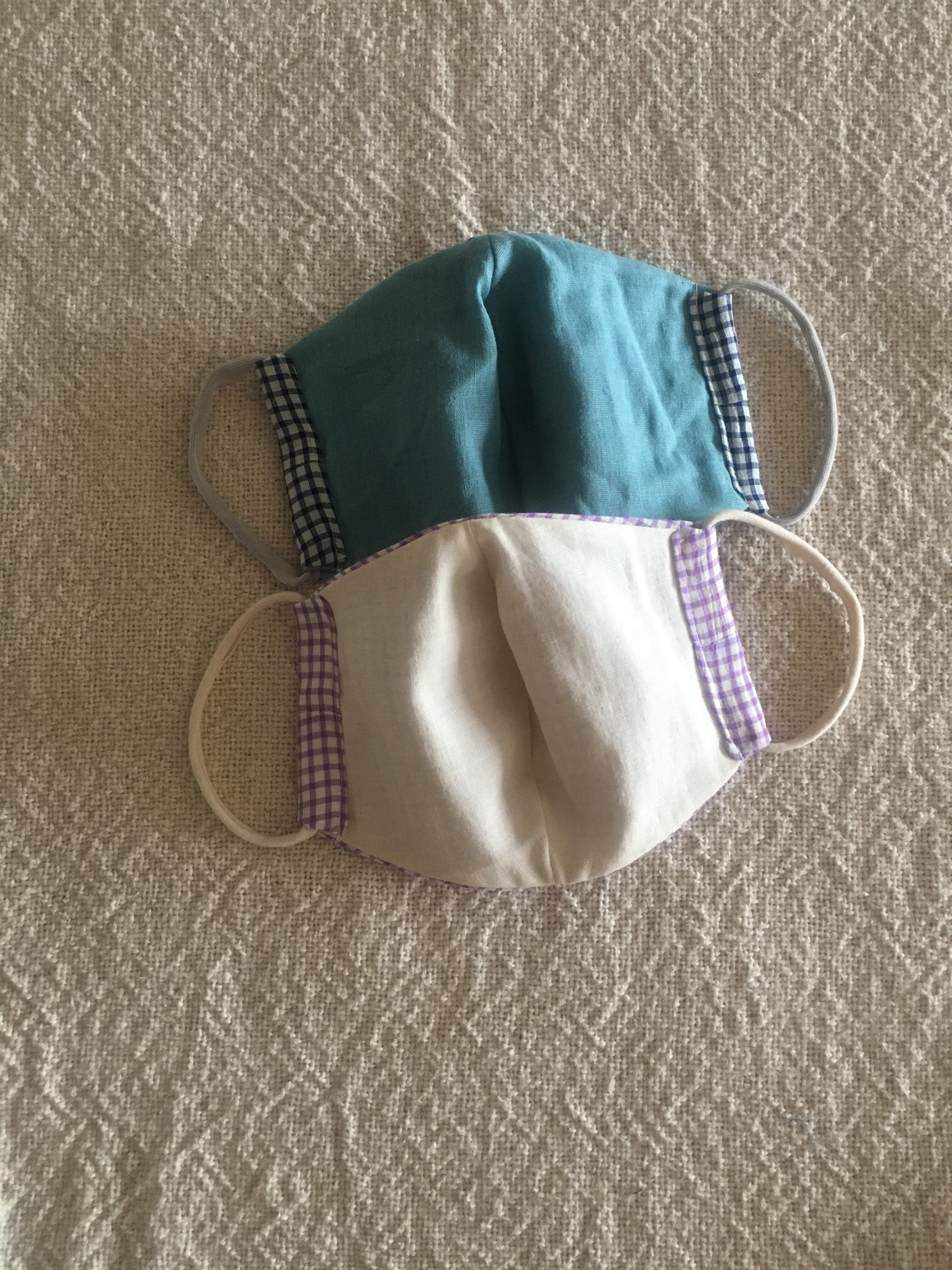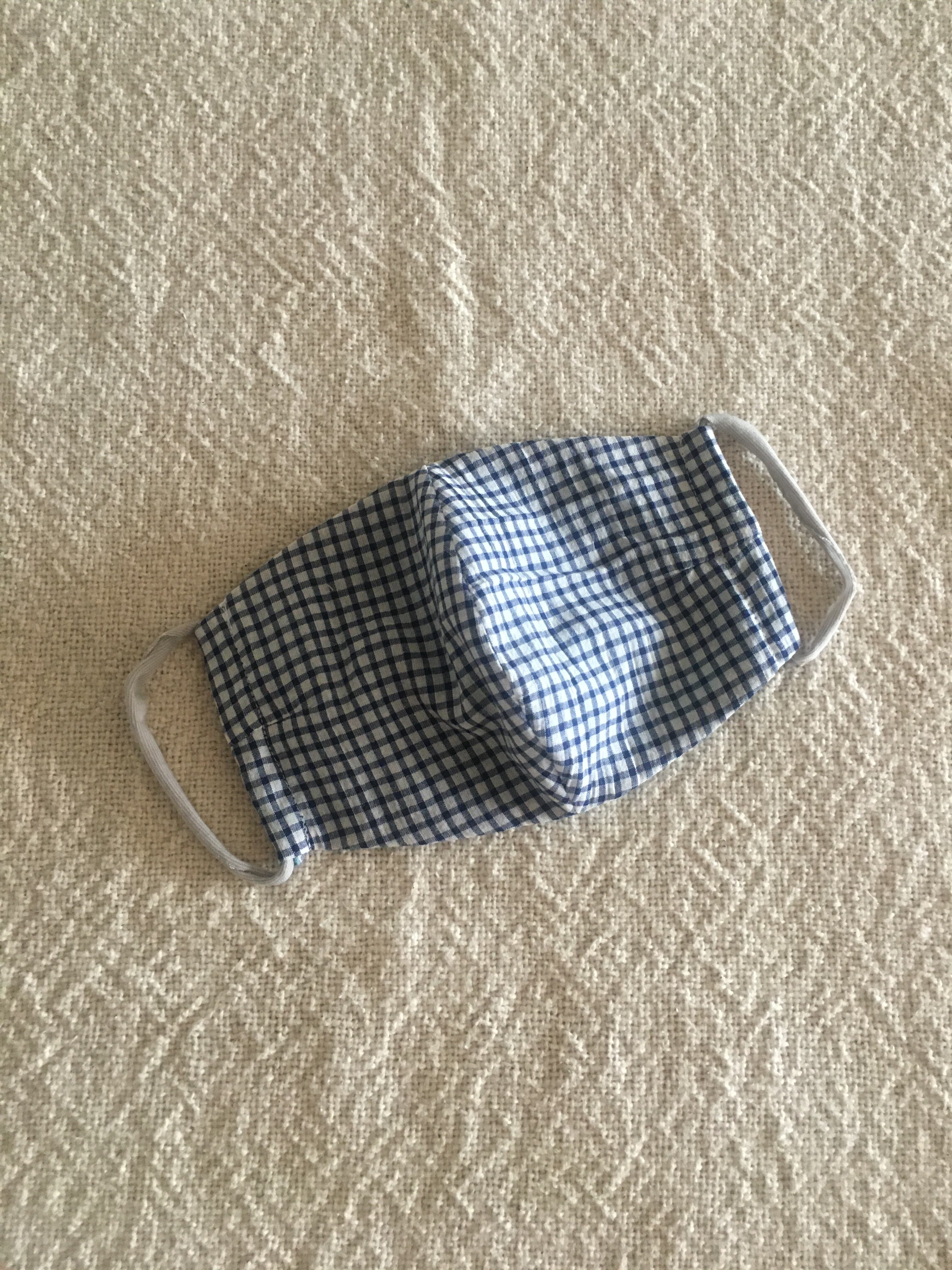 【立体マスク】綿麻チェック×ガーゼ ネイビー